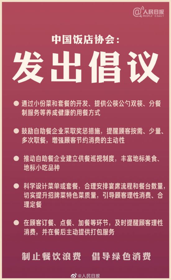近日,习近平总书记对制止餐饮浪费行为作出重要指示。总书记一直高度重视粮食安全,提倡“厉行节约、反对浪费”的社会风尚,多次强调要制止餐饮浪费行为。为了更好地贯彻习近平总书记指示精神,中国商业联合会、中国饭店协会、中国连锁经营协会、中国烹饪协会联合美团点评向全国餐饮行业发出如下倡议: