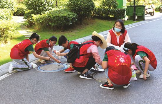 活动中,美术教师首先向“萌芽”小志愿者介绍丙烯颜料如何调色和注意事项,接着根据社区志愿者要求做好分组,分别去找要画的窨井盖,然后大展身手。“萌芽”小志愿者拿着工具,选择自己喜欢的图案调色,精心涂画。不一会儿,警示图标、创意艺术字、动漫动物、炫酷卡丁车等,一个个美丽生动的涂鸦形象跃然而出,为冰冷的井盖抹上一道道亮丽的“风景线”。