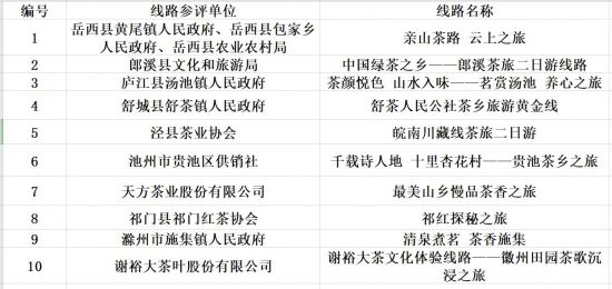 附:“安徽省首届十大最美茶旅线路”名单