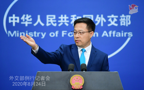 人民网北京8月24日电 据外交部网站消息,外交部发言人赵立坚主持24日例行记者会。记者会实录如下: