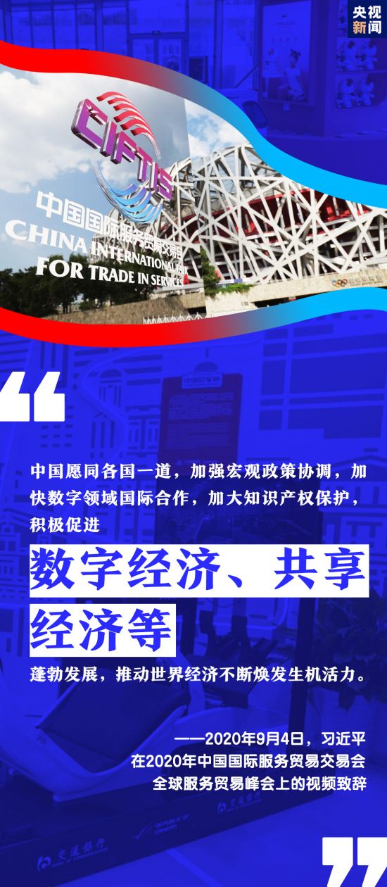 9月4日,2020年中国国际服务贸易交易会全球服务贸易峰会在北京开幕。习近平主席通过视频方式在峰会上致辞。
