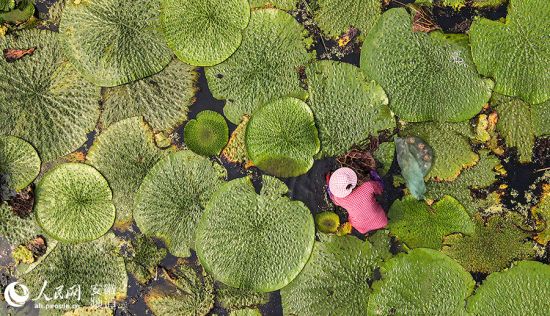 滁州定远,村民正在采摘芡实。当地贫困户通过在基地务工,实现就业脱贫。王锐摄