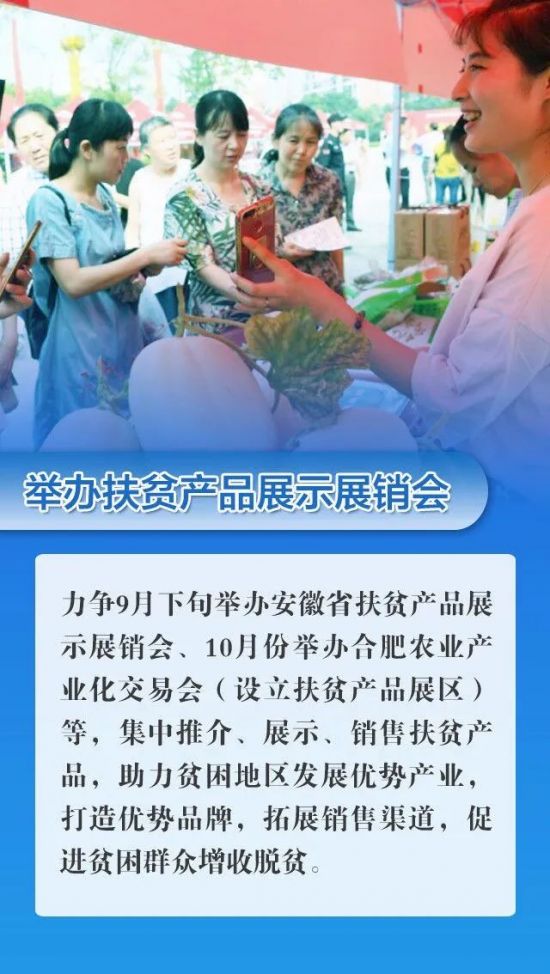 为扎实开展9月份“消费扶贫月”活动,近日省扶贫开发领导小组专门印发了《安徽省“消费扶贫月”活动实施方案》,广泛组织动员社会各界积极参与消费扶贫,千方百计拓展贫困地区特别是受灾贫困地区扶贫产品销售门路。目标到2020年底,全省扶贫产品销售额达到60亿元以上。