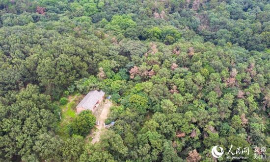 在皇甫山国有林场,被树木团团包围着的护林员小屋。王锐摄