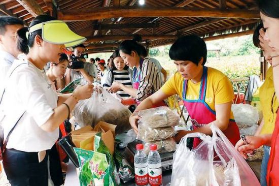 资料照片:黄山市市直机关职工在休宁县榆村乡选购贫困村山货。记者 潘成 通讯员 余勇/摄