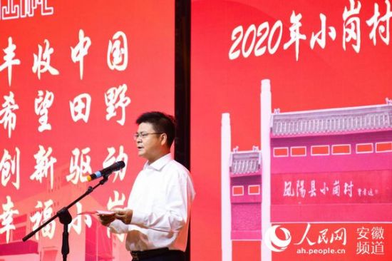 人民网滁州9月22日电(周坤) 春来暑往勤劳做,仲秋欢喜庆余年。9月22日上午,“庆丰收、迎小康”2020年小岗村农民丰收节暨消费扶贫月扶贫产品展销活动在凤阳县小岗村开幕。