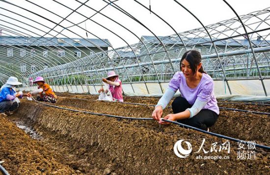 薛荣带领贫困户一起种植蔬菜、瓜果,脱贫致富。王锐摄