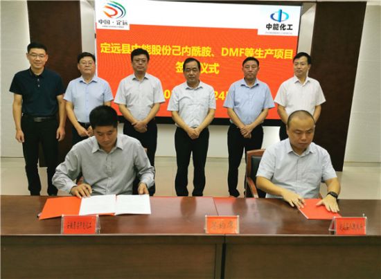 9月24日,中能股份己内酰胺、DMF 等生产项目签约仪式在定远县成功举行。滁州市人大常委会副主任、县委书记万瑞健,县人大常委会主任陈国祥,县委副书记舒宏俊,县委常委、副县长潘功进,县委常委、统战部长戚建华,县委常委、炉桥镇党委书记王俊卿,副县长李大明及相关单位负责人参加签约仪式。