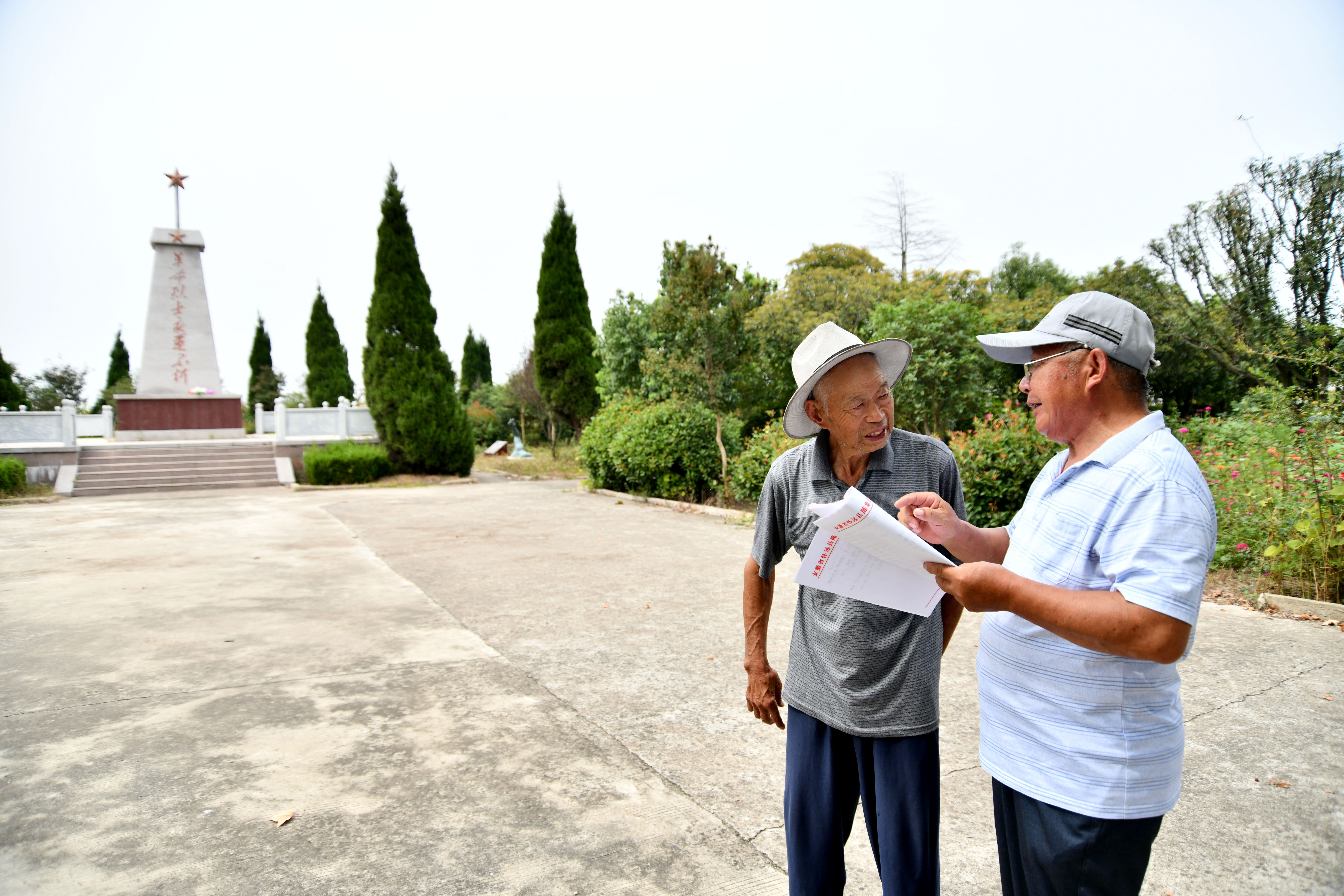 距离胡刘烈士陵园10多公里外,年过七旬的年介涛则忙着查找资料、比对烈士信息,为烈士寻找亲人。年介涛不时会来到胡刘烈士陵园,核对烈士碑文信息,与老朋友胡兆伦聊聊天。两位老人因同一座烈士陵园,结下了深厚的友谊。