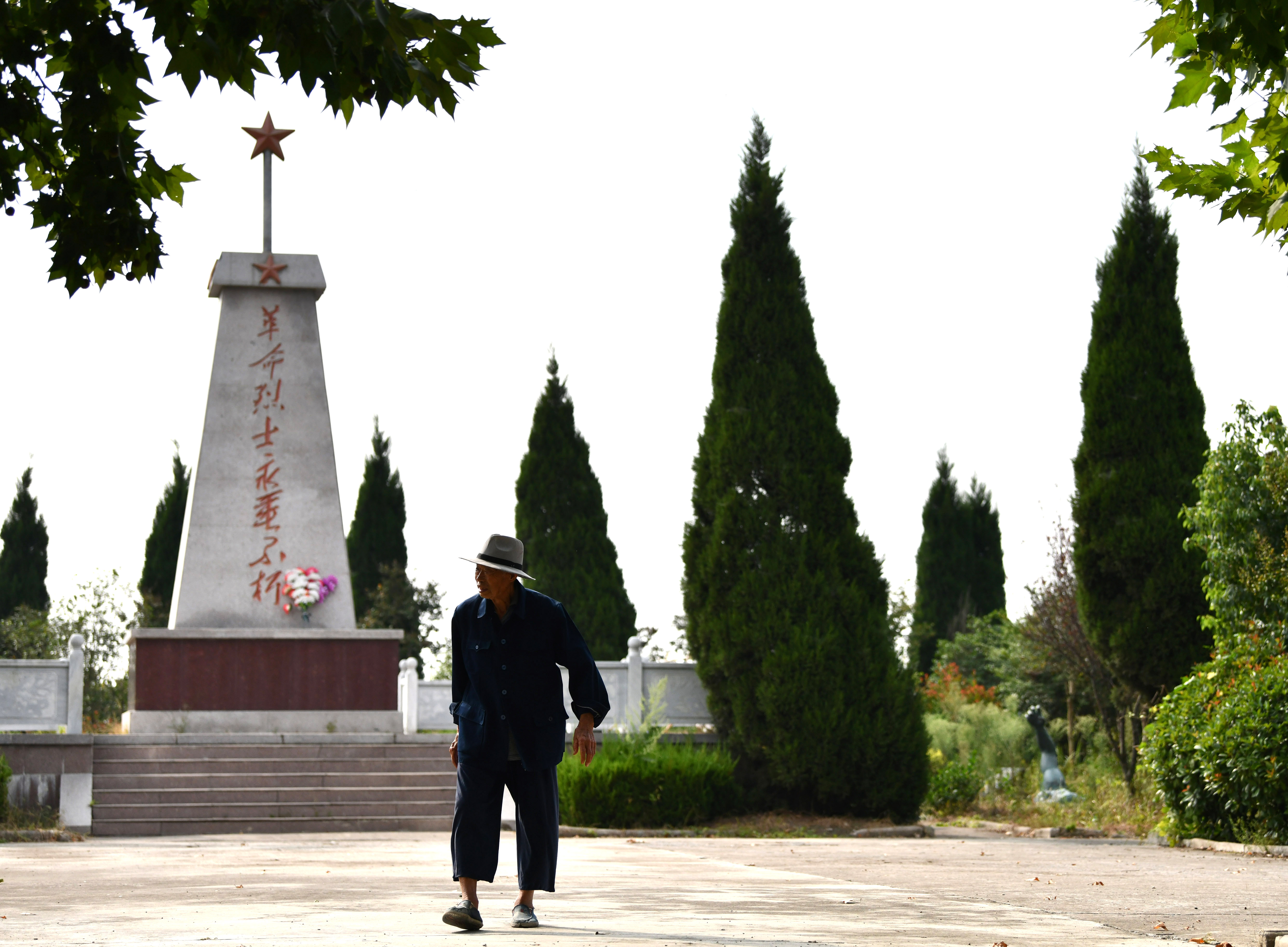 今年88岁的胡兆伦是陈集镇永佛村的村民。他70多年来守护的陵园原来只是一个无名烈士墓园。2013年当地政府迁移了散落在陈集镇各处的烈士墓到此建成烈士陵园。时光侵蚀下,老人的身体已大不如前,但他仍每天坚持来到陵园,走上几圈,清扫落叶,擦拭墓碑。胡兆伦说,守护烈士已成为他生命的一部分,有生之年他会一直守护在这里。