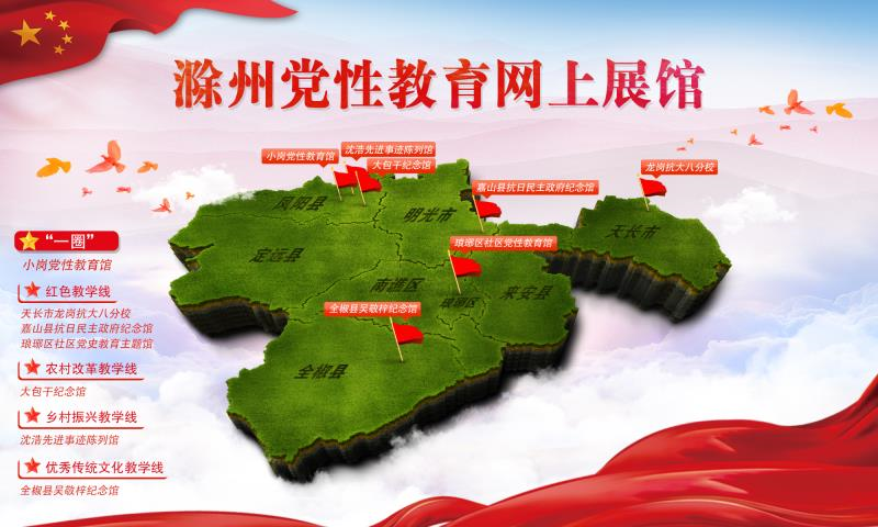 目前,“云展馆”形成了以“小岗党性教育馆”为龙头,以“大包干纪念馆”“沈浩先进事迹陈列馆”“天长市抗大八分校纪念馆”“嘉山县抗日民主政府纪念馆”“全椒县吴敬梓纪念馆”“琅琊区社区党史教育主题馆”等为支撑的“展馆集群”。