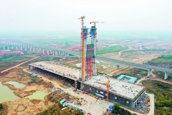 “为了保障引江济淮工程的顺利进行,同时降低施工的时间、资源成本,提高安全系数。将军岭路桥采取了先建设跨河道上方主桥部分,后开挖河道、建设引桥的施工方案。”据顾春光介绍,为了将116米高的主塔建设得稳定美观,过去一年里的确困难重重。