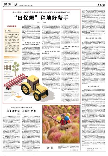 去年底,农业农村部组织开发了中国农业社会化服务平台,促进供需对接、资源整合。各类社会化服务主体也纷纷立足自身优势,不断提升服务的规范化、信息化和专业化水平。