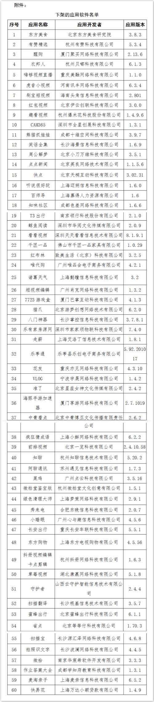 据悉,10月26日,工信部向社会通报了131家存在侵害用户权益行为APP企业的名单。截至目前,经第三方检测机构核查复检,尚有60款APP未按照工业和信息化部要求完成整改。