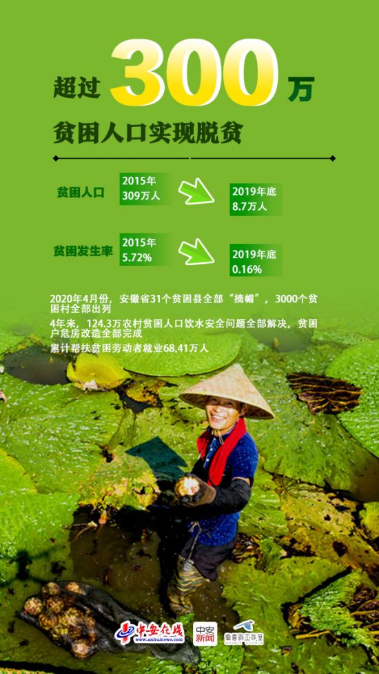 2020年4月,安徽省31个贫困县全部“摘帽”,3000个贫困村全部出列;