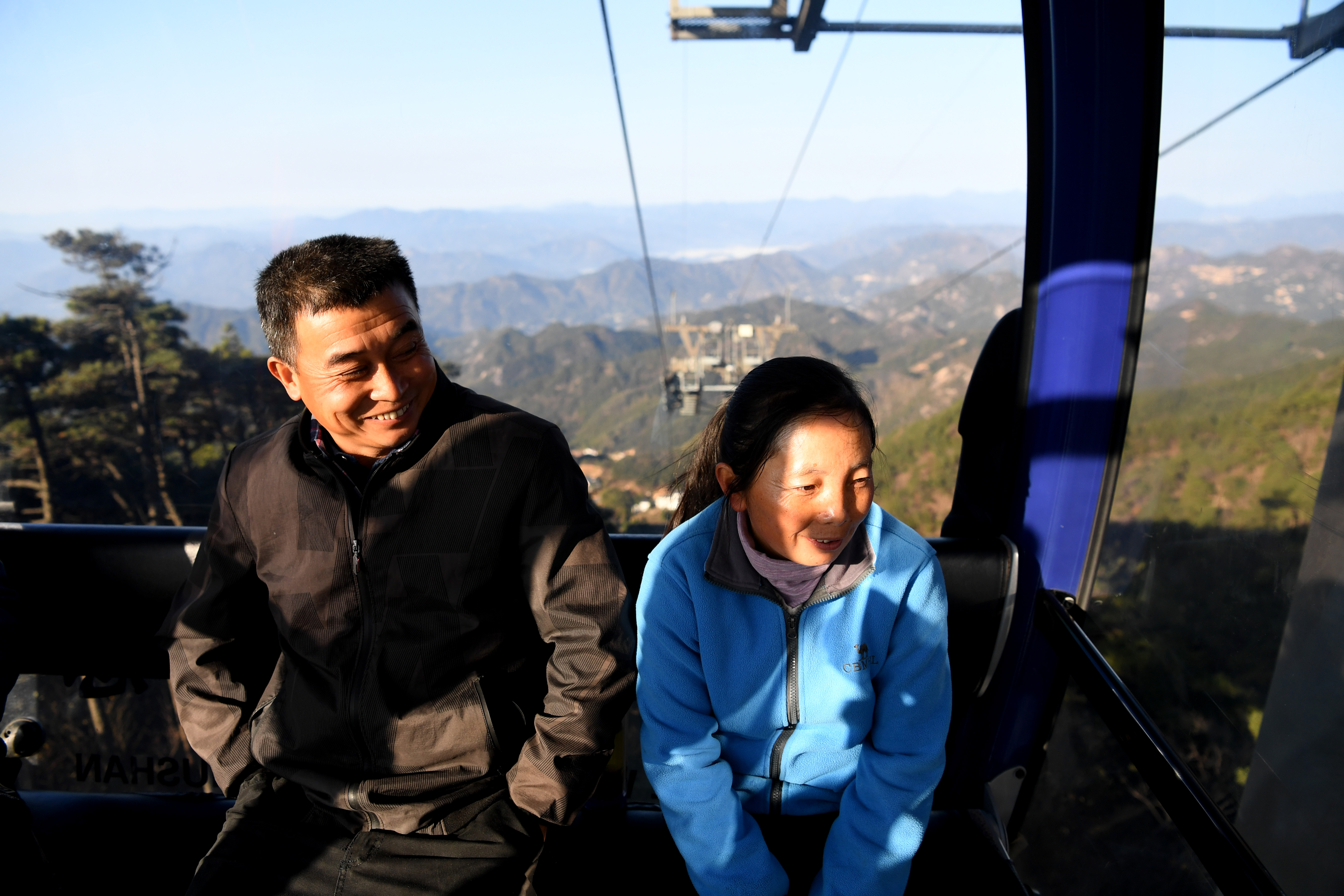 11月13日,徐胜利和杨月红一起乘坐大龙窝索道上山。