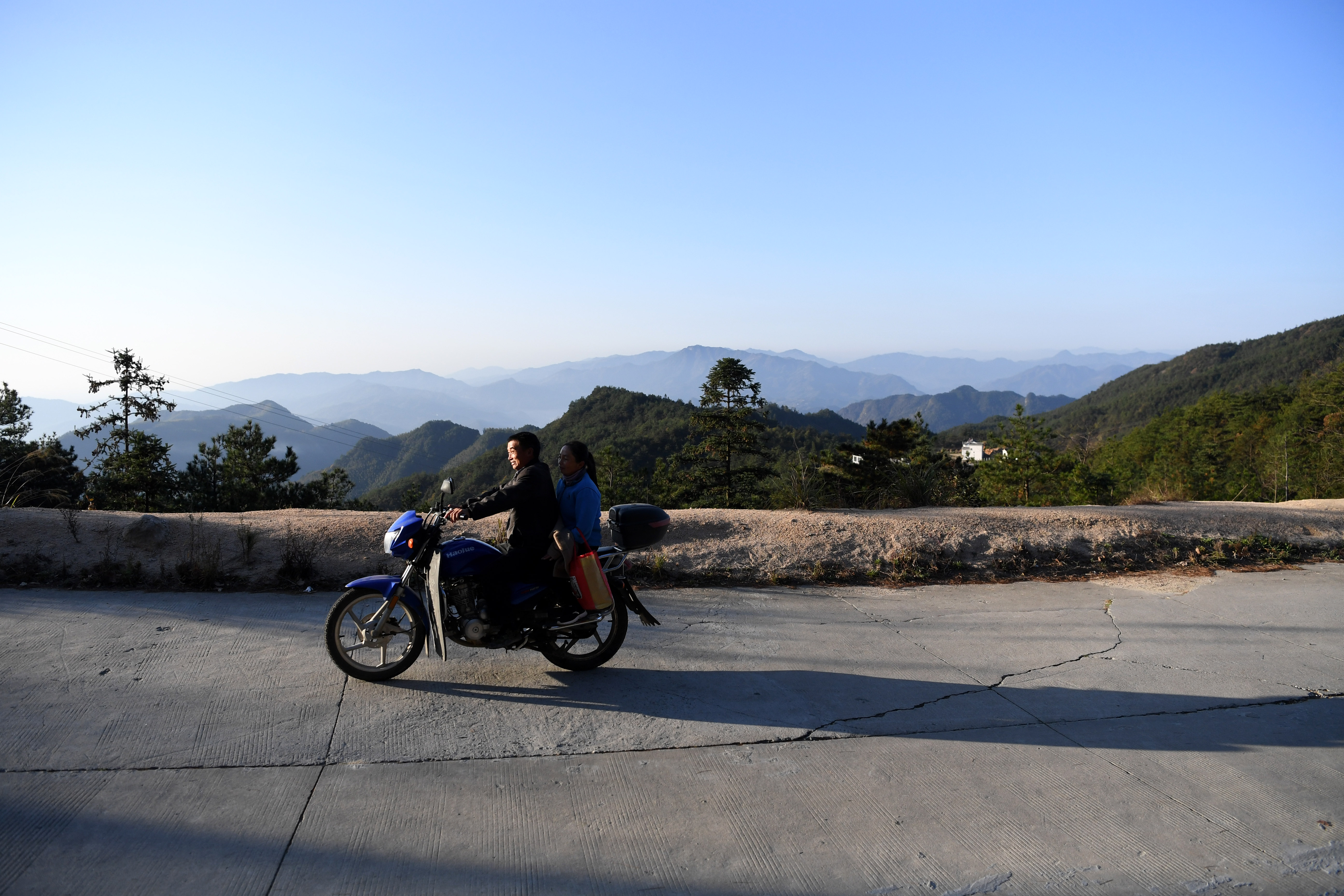 11月13日早晨,徐胜利骑车载着杨月红前往天柱山大龙窝索道。