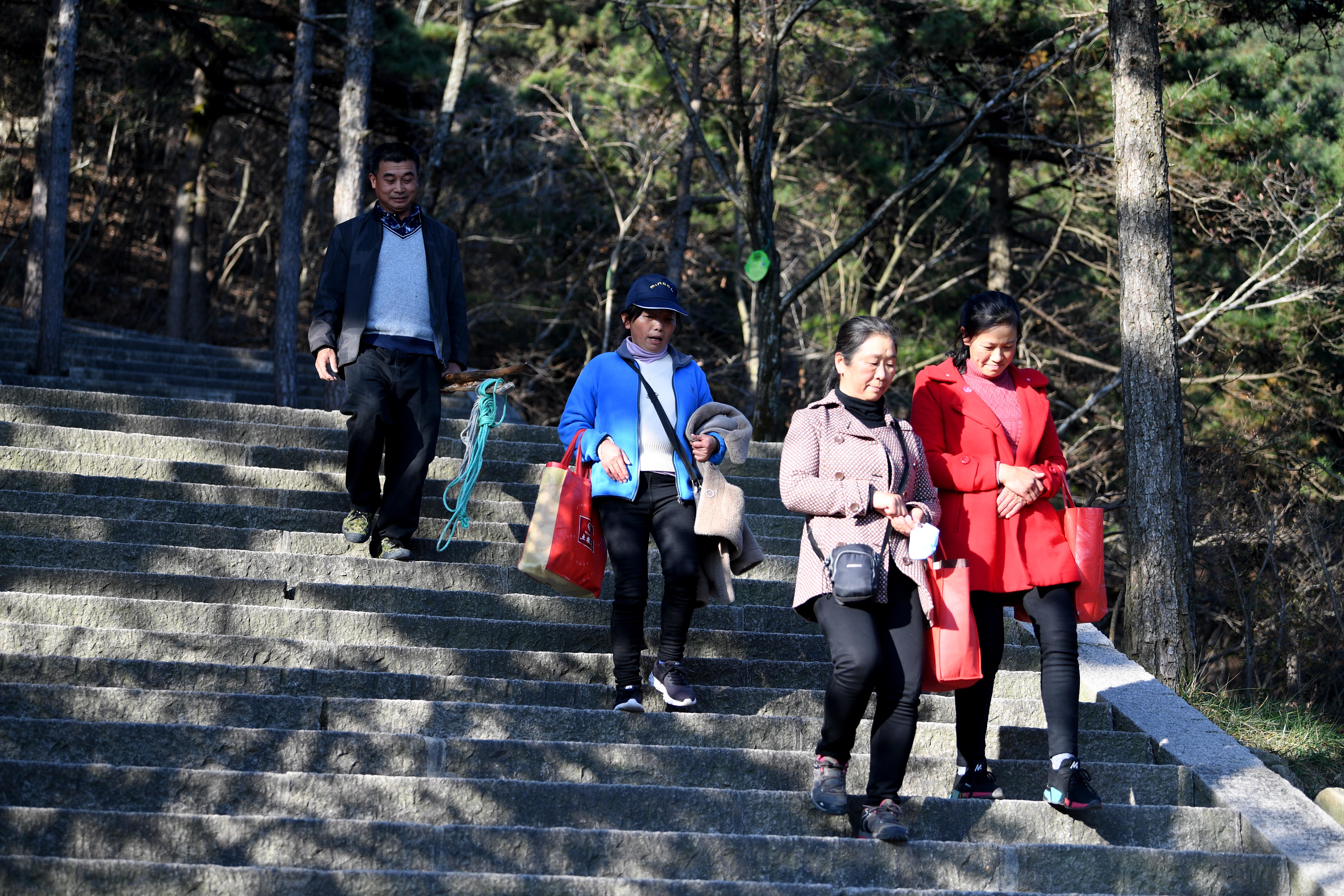 11月13日,徐胜利(左一)与杨月红(左二)一起下山。