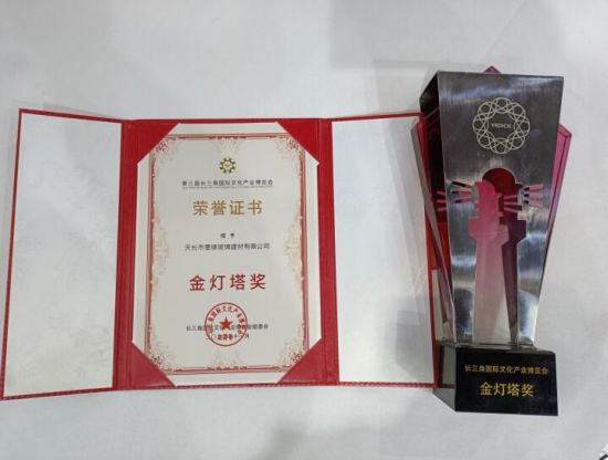 11月19日至22日,第三届长三角国际文化产业博览会在上海国家会展中心举行。本次展会,安徽共组织136家企业(单位)参展,经过组委会层层筛选,全省仅6家企业荣获“金灯塔奖”。天长市委宣传部组织天长市墨缘玻璃建材有限公司参展,收获了“金灯塔奖”,也是天长市首次荣获此奖,该公司同时获得“优秀展示奖”。