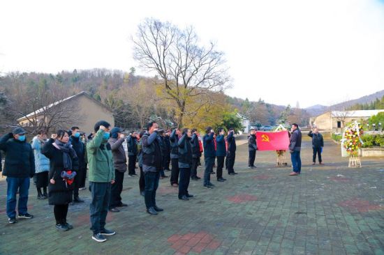 在烈士陵园前,全体干部职工庄严肃穆,向烈士深深三鞠躬,并默哀三分钟。随后在景区党支部书记黄龙带领下,全体党员面向党旗重温了入党誓词。 最后干部职工向烈士敬献了花篮和鲜花,党员志愿者开展了扫墓活动。
