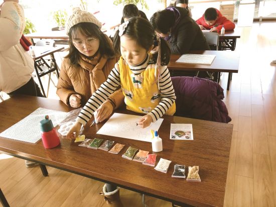 当天上午,活动在市博物馆交流坊拉开帷幕。指导老师向大家介绍了和冬至有关的习俗,开展节气知识普及,并带领孩子们认识五谷杂粮。随后,指导老师现场展示了制作粮食画的完整步骤,孩子们睁大眼睛仔细观察,利用五谷杂粮认真制作,一个个忙得不亦乐乎。在老师和家长的带领下,大家先后完成了自己的“五谷丰登画”。此举不仅让孩子们了解中国的传统文化,而且锻炼了他们的动手动脑能力。