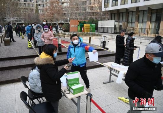资料图:12月26日,根据新冠肺炎疫情防控要求,北京市朝阳区望京地区望京街道、东湖街道开展为期两天的社区全员核酸检测。 中新社记者 侯宇 摄