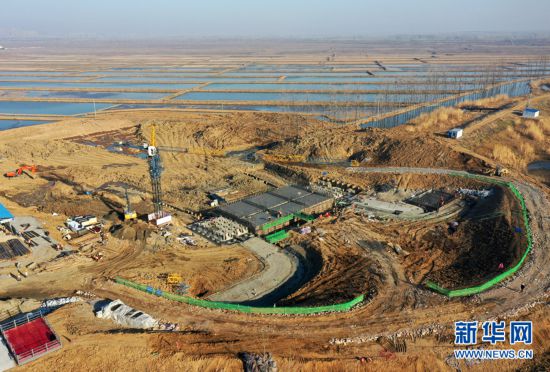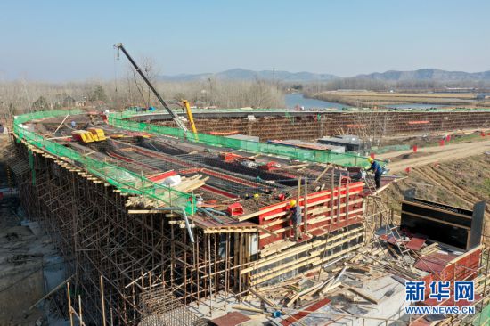 1月18日拍摄的安徽省滁州市全椒县荒草二圩进退洪闸施工现场(无人机照片)。新华网发(沈果 摄)
