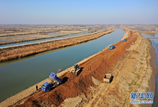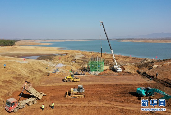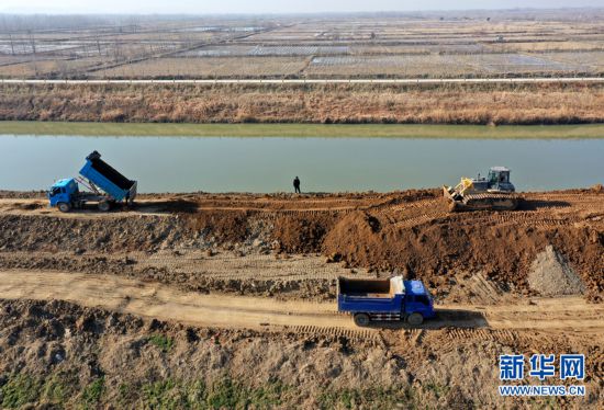 入冬以来,安徽省滁州市全椒县水利工程按下“快进键”,工地上一派热火朝天的景象。建设者们筑牢堤防、加固水库、疏浚沟渠,进一步加强农田水利建设,加快健全农业灌溉设施体系、补齐防汛抗洪设施短板,为春耕备耕和防汛抗旱夯实基础。新华网发(沈果 摄)