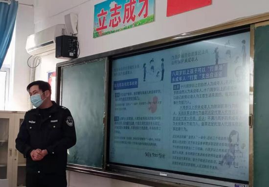 政法干警为学生们上法律课。凤阳县委宣传部供图 该县还利用未成年人法治宣传教育基地开展普法教育活动,邀请县内中学生到未成年人法治教育基地接受法治教育。参观结束后,检察官根据初中学生的生理和心理发育的特点,将鲜活的案例与法理相结合,向学生们分析了校园暴力的形成原因和危害,讲解了故意伤害、寻衅滋事、聚众斗殴等相关刑法知识,最后呼吁他们要树立正确的人生观、价值观,增强自我保护意识,提高危险防范能力,自觉抵制校园欺凌,在法治阳光下健康成长。(陈雪琪 孙艳萍)(责编:黄艳、张磊)