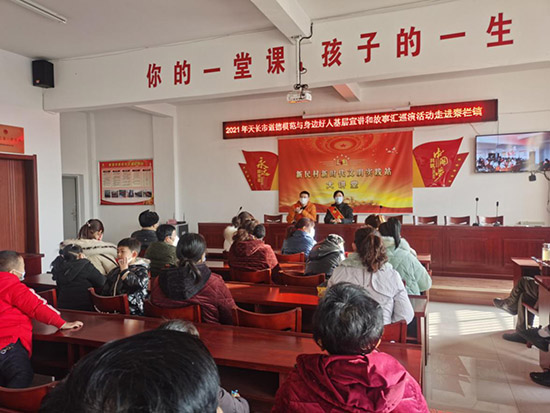 2021年2月2日,“滁州好人”李义红到秦栏镇新民村宣讲好人事迹。天长市委宣传部供图