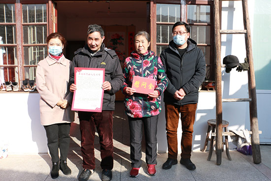2021年2月4日,天长市委常委、宣传部长朱慧琳(左一)慰问滁州好人刘月香(右二)。天长市委宣传部供图
