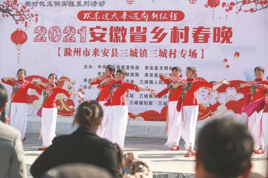 2月20日,“2021我们的节日·春节”暨“安徽省乡村春晚三城镇三城村专场”展演活动在来安县三城镇三城村银杏广场精彩呈现。为避免人群聚集,该场晚会采取全程录播的形式开展,原汁原味地呈现乡村生活和劳作场景,表达了村民对美好生活的期盼和向往。