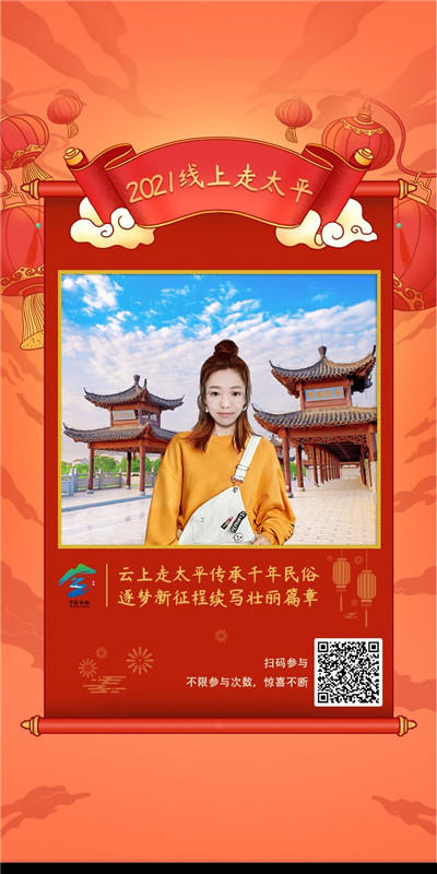 据介绍,今年全椒继续将传统民俗的形式创造性转化,把“走太平”这项民俗活动与网络相结合,发起了主题为“云上走太平传承千年民俗 逐梦新征程续写壮丽篇章”的线上活动。活动中,网友可以自主选择角色,通过音效、图片、文字介绍、系红色绸带祈福等互动特效,参与围观全椒非遗民俗大巡游、特色美食展示,祈福祝愿,最后还可以使用自己的真人照片和太平桥进行合影,云上合影打卡完成走太平全过程。