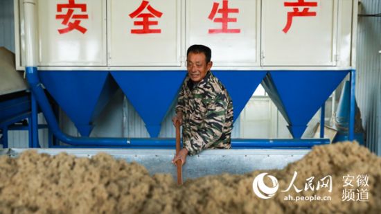 村民在加工厂把艾草加工成为艾绒。人民网 陶涛摄