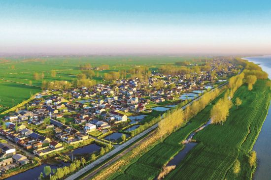 近日航拍的明光市潘村镇张台村草木葱茏、水清岸绿,良田美池、屋舍俨然。