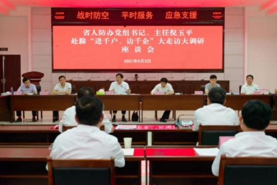 6月3日,安徽省人防办党组书记、主任倪玉平在滁开展“进千户、访千企”大走访、大调研、大督查活动时强调,全省人防系统要把党史学习教育成果转化为履行使命任务能力的成效。坚持“学党史、悟思想、办实事、开新局”同步发力,积极推进“我为群众办实事”,以优异的成绩庆祝建党100周年。
