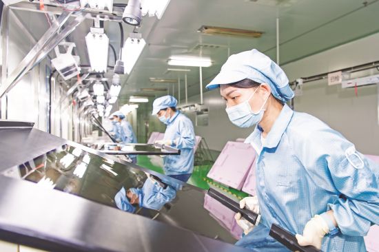 近日,滁州东盛电子科技有限公司,工人们正在对面板进行检验。