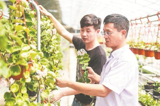 日前,滁州市琅琊区八里村菁萃园艺球兰基地,负责人在查看球兰长势。该基地于近日成功登记为“出境种苗花卉企业”,成为全省第一家种苗花卉出口企业,初步预测销售收入将提高5倍。近年来,琅琊区主动为农业企业解难题,扶持农业企业健康发展。 通讯员 赵辰 阎良辰 摄
