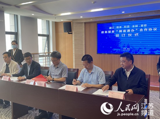 为深入开展党史学习教育,坚持“问需于民”,着力解决企业、群众异地办事堵点痛点难点,18日,南京市浦口区与安徽省滁州市南谯区、全椒县、来安县和马鞍山市和县举办“跨省通办”政务服务战略合作协议签订仪式。这标志着五地在政务服务“跨省通办”工作上迈出了重要一步。通过就近申报、异地办理,这五地的企业和群众将能免去不少跨省奔波办事的烦恼。