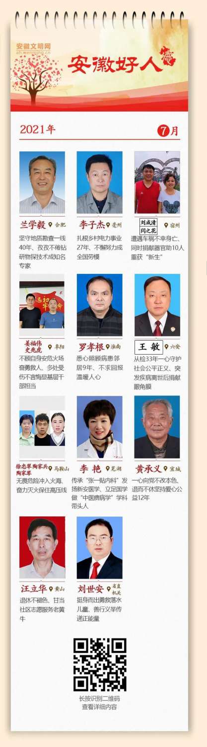 据安徽文明网消息:日前,经公众推荐和专家评议,兰学毅等15人入选7月份“安徽好人”。