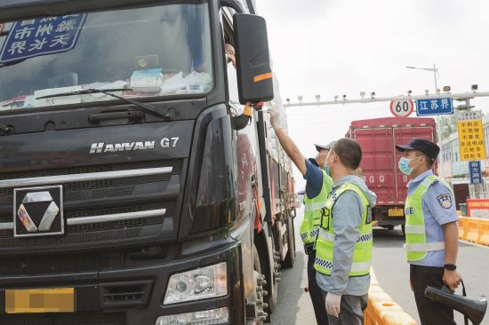 8月11日,G345天长秦栏镇与扬州大仪镇交界处查验点,工作人员对于不符合进入标准的车辆发放劝返卡,要求车辆返回。 全媒体记者徐 浩摄