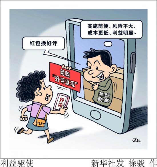市场监管总局17日发布《禁止网络不正当竞争行为规定》征求意见稿,面向社会公开征求意见。其中明确规定:经营者不得采取以返现、红包、卡券等方式足以诱导用户作出指定评价、点赞、转发、定向投票等互动行为。专家指出,此类行为扭曲破坏电商信用评价机制,侵害消费者合法权益,应当严格依法治理。