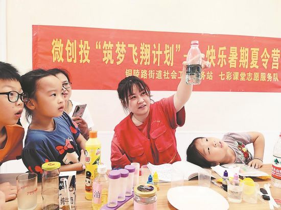 在为期2周的夏令营里,小晴与其他小朋友一起参加团体游戏,开展读书分享,还在老师指导下进行专注力练习。“对于我们这样的务工家庭来说,放暑假让孩子一个人在家真的不放心。这下好了,我每天将孩子送到这里,可以安心去工地干活,孩子也能玩得高兴、学到一些有用的东西。”小晴的爷爷说。