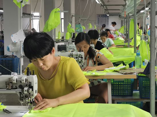 就业帮扶车间工人正在加工服装。定远县委宣传部供图