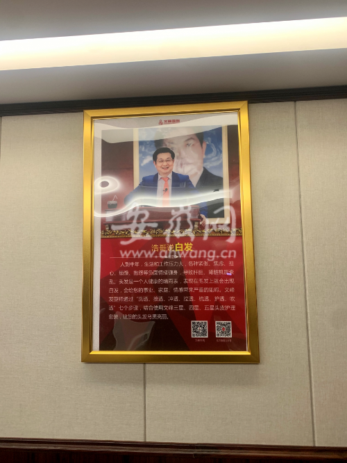 12月9日,新安晚报、安徽网、大皖新闻记者来到位于合肥市包河区桐城南路的文峰美容美发店,距离该店十米开外便能看到印着一个男士“大头照”的红色背景店招,而这个男士就是上海文峰的“浩哥”。此外该店招上面还有美容、健康、长寿等字眼。走进店内,记者看到里面张贴了多个“浩哥说”系列的宣传画,如浩哥说脱发、浩哥说白发、浩哥说头发枯燥等。