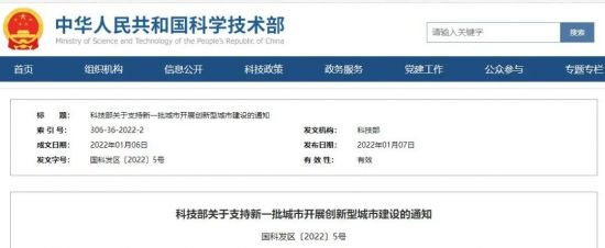 科技部关于支持新一批城市开展创新型城市建设的通知