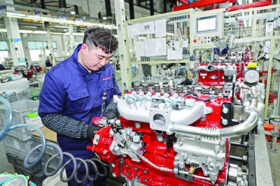 全柴集团有限公司工人在组装生产国六发动机。 沈果 摄
