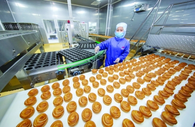 安徽省小岗盼盼食品有限公司手撕面包生产线。 卢志永 摄