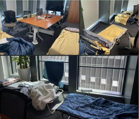 在浦东陆家嘴的商务楼宇里,行军床加睡袋已成为标配。各大金融机构纷纷采取“现场+远程”“核心岗位24小时人员驻守”等方式,提高封控期间的应急响应级别。