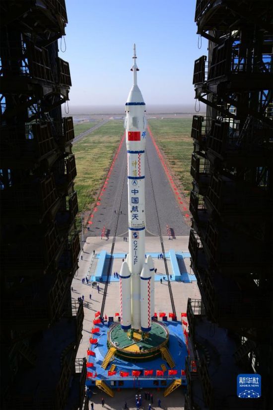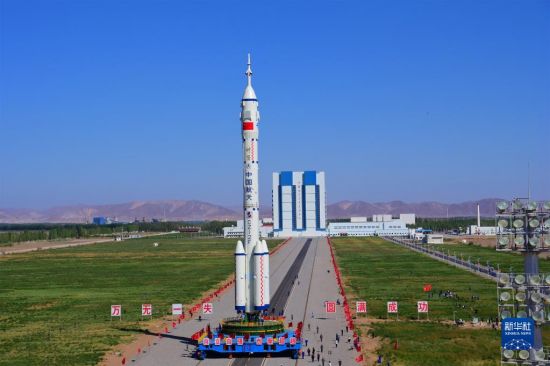 5月29日,神舟十四号载人飞船与长征二号F遥十四运载火箭组合体转至发射区。新华社发(汪江波 摄)